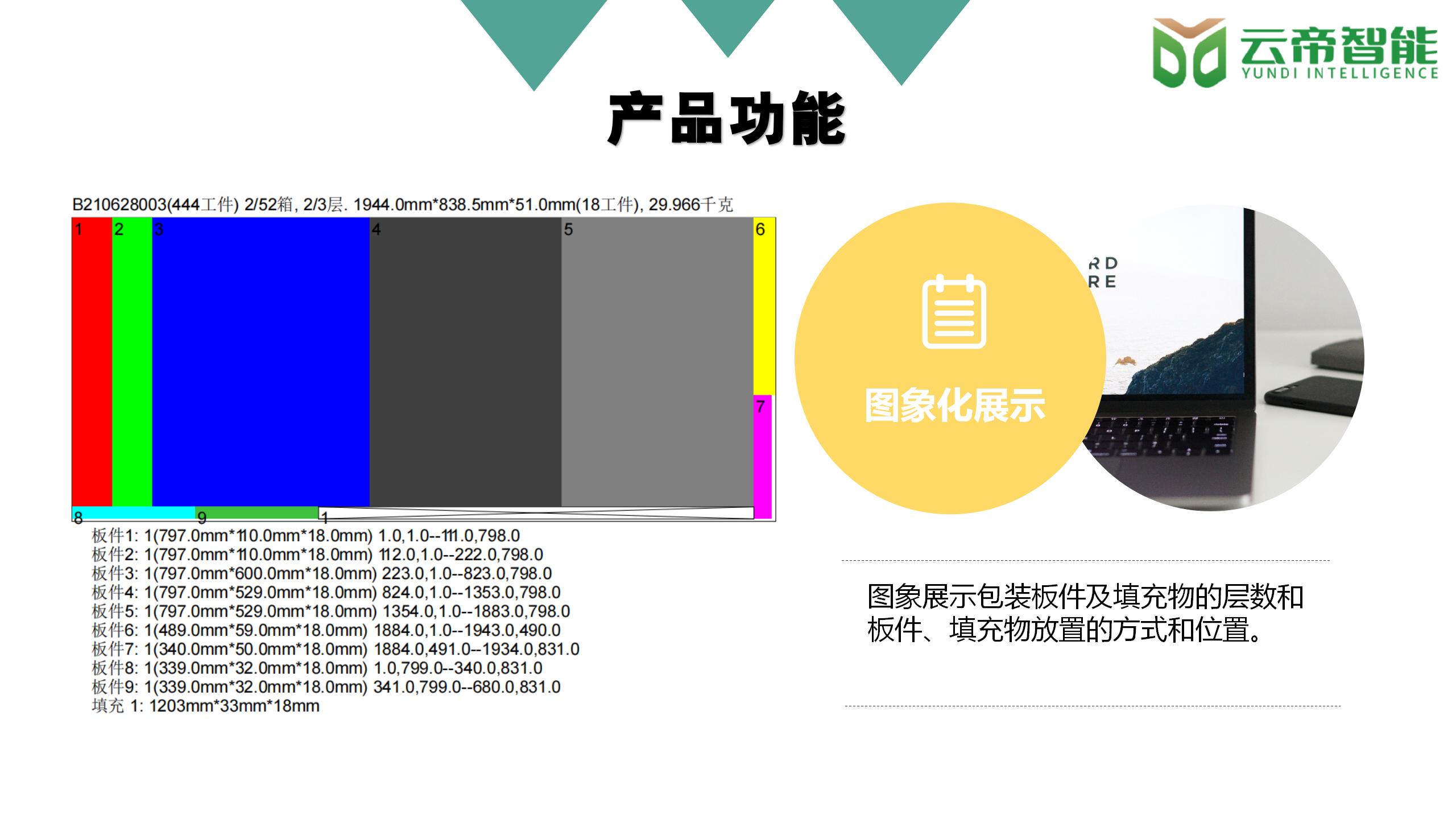 * 通過(guò)軟件的超(chāo)級算法,闆(pan)件擺放均(jun)衡有序,無(wú)突出❌棱角(jiao)🌏,确保🍓包裝(zhuāng)後的紙箱(xiang)利索、漂亮(liàng),且重量均(jun)衡, 提升包(bāo)裝形🈲象。