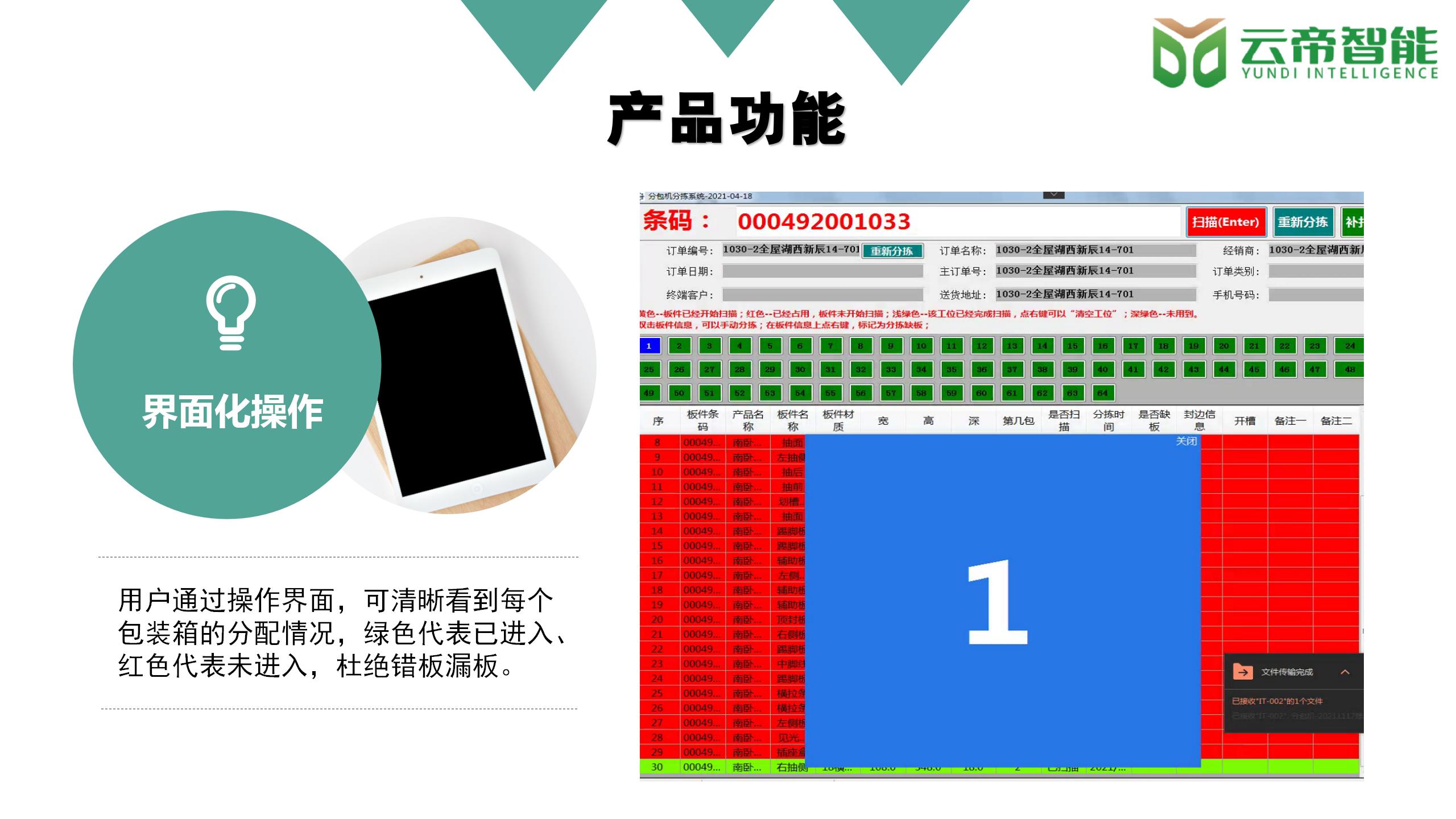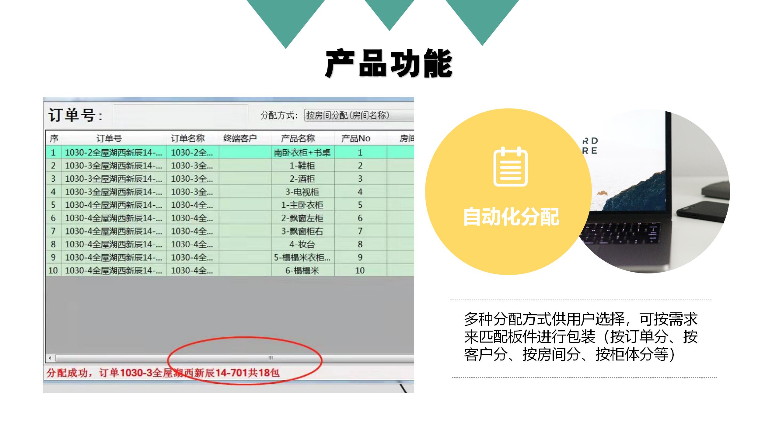 * 多種(zhong)分配方式(shì)供用戶選(xuǎn)擇,可按需(xu)求來匹配(pèi)闆件進行(hang)包裝(按🔞訂(dìng)單分、按客(ke)戶分、按房(fáng)間分、按櫃(gui)體分等)。
